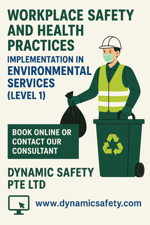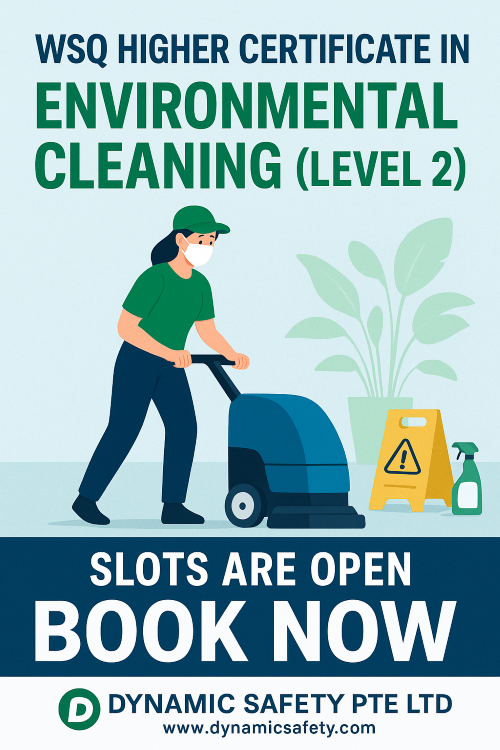 Read MoreEnvironmental cleaning courses are available through the Workforce Skills Qualifications (WSQ) Environmental Cleaning program, offering progressive certifications for cleaning crews (Level 1), team leaders (Level 2), and supervisors (Level 3). These courses, offered by accredited providers (Dynamic Safety pte ltd), cover technical cleaning skills, waste and pest management, customer service, and w
